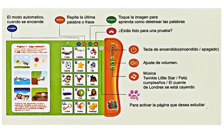 Spanish Learning E-Book with Interactive Voice Reading!