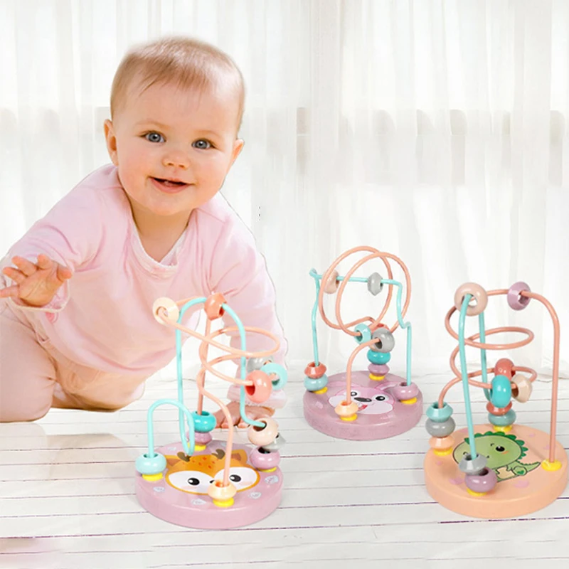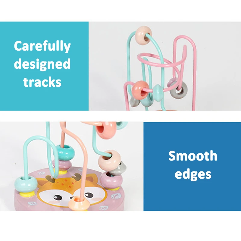 Toddler Bead Maze Math Toy Wooden Mini Circles Roller Coaster